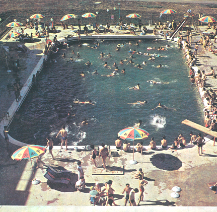 1960年代 ドリームランドパンフレットより(下)ヘルスセンター、ボウリングの2つの施設が並んでいる。