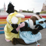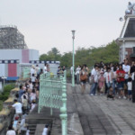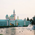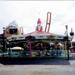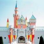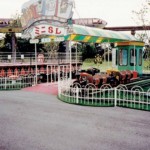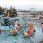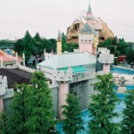 メリーゴーランド、コーヒーカップ、バンパーボート、お城の裏側付近